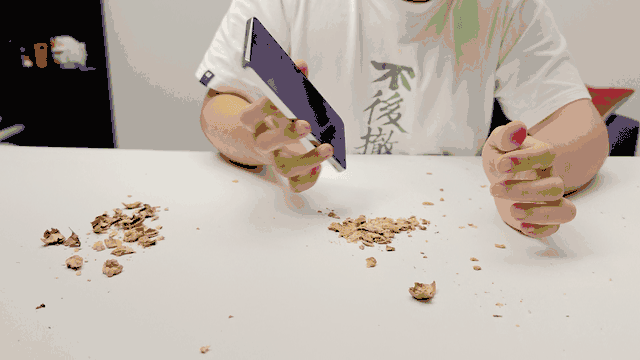 不仅是满级防水,抗摔性也同样优秀,OPPOK13s采用经典的超抗摔金刚石架构,由高强度航空合金骨架和OPPO晶盾玻璃构成。实测用K13s来砸两个核桃,砸完后屏幕完好无损,手机还可以正常使用。